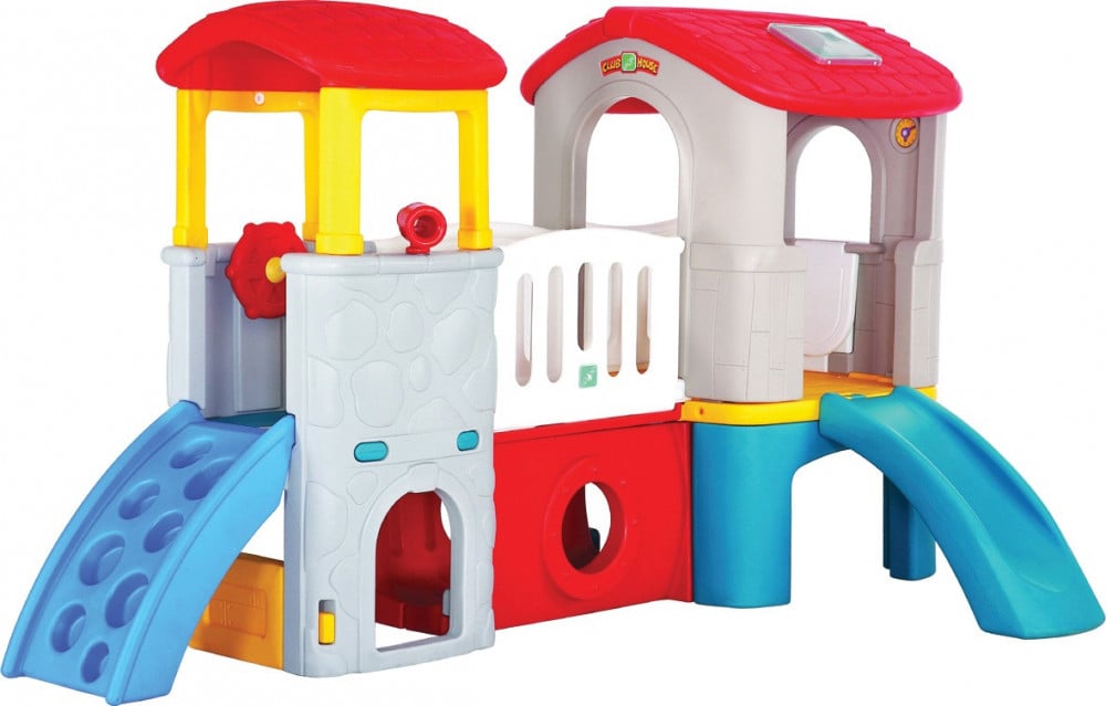 المجموعة الذهبية من جهاز التسلق ( زحليقة ، لوح رسم و طاولة مكعبات بدون مكعبات ) لون بني فاتح وبرتقالي