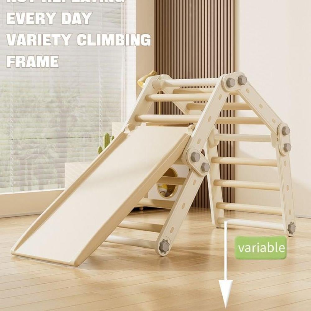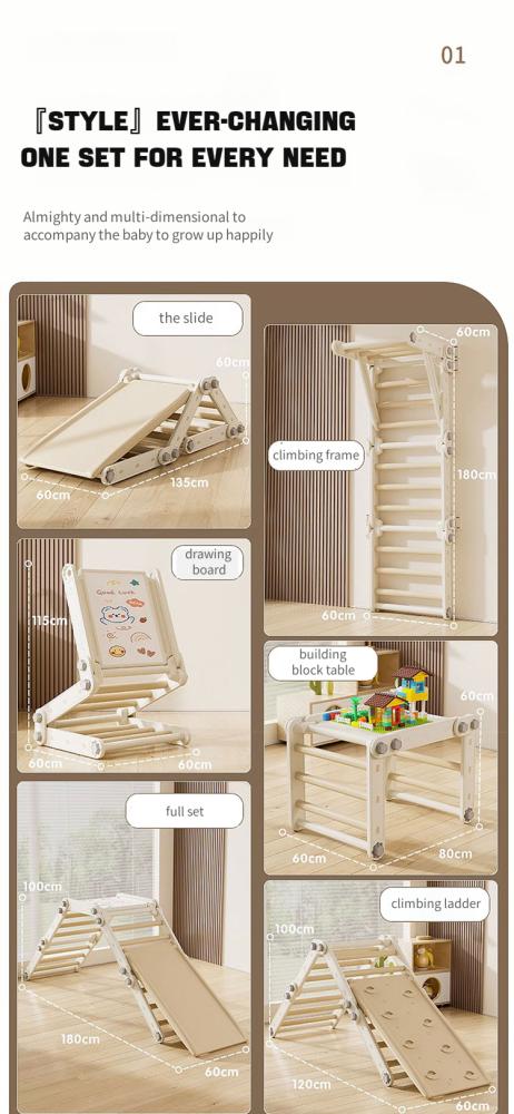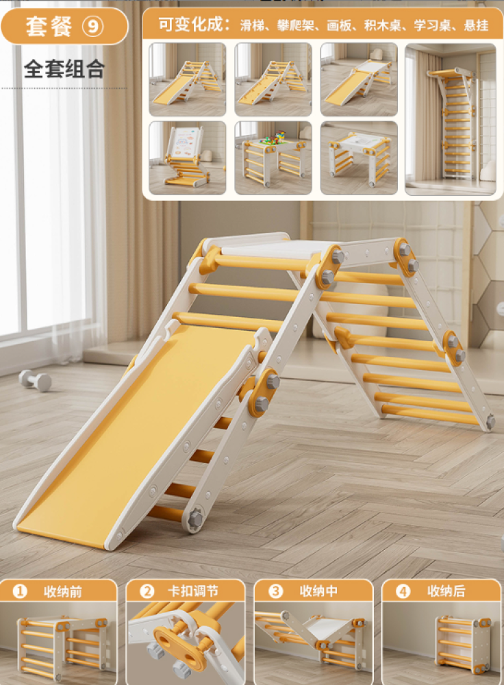 المجموعة الذهبية من جهاز التسلق ( زحليقة ، لوح رسم و طاولة مكعبات بدون مكعبات ) لون بني فاتح و برتقالي