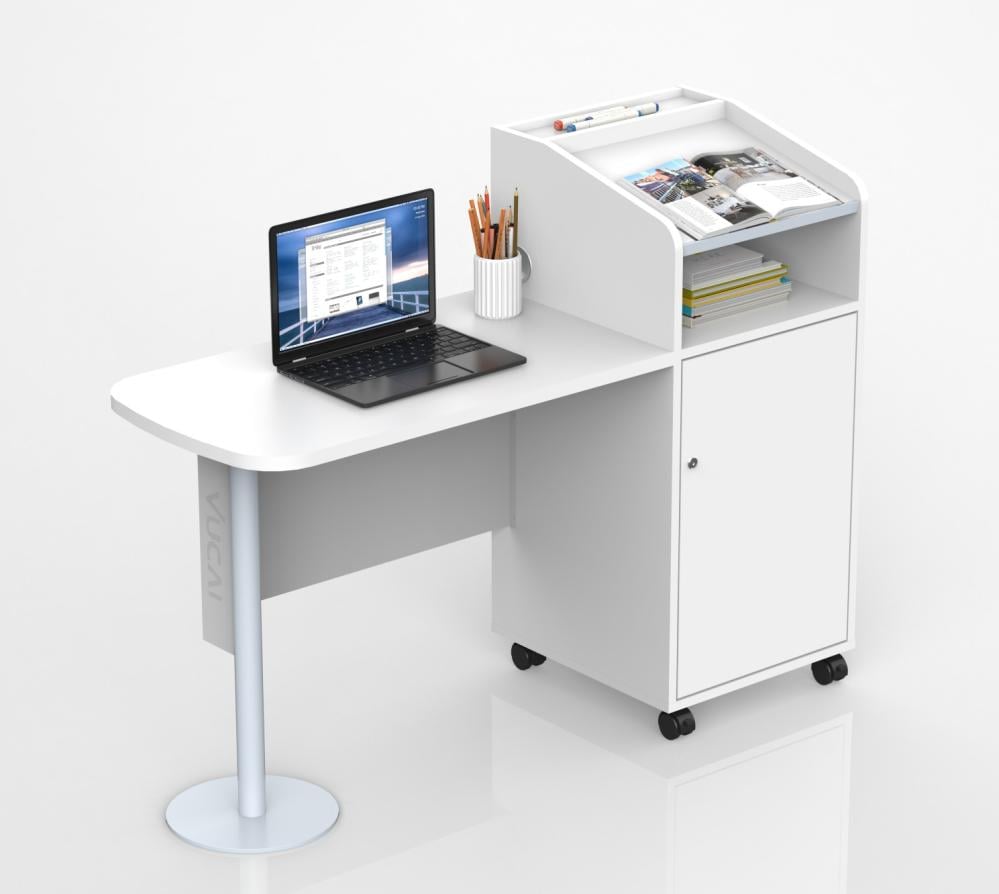 طاولة المعلم المميزة مع منصة الشرح باللون الأبيض